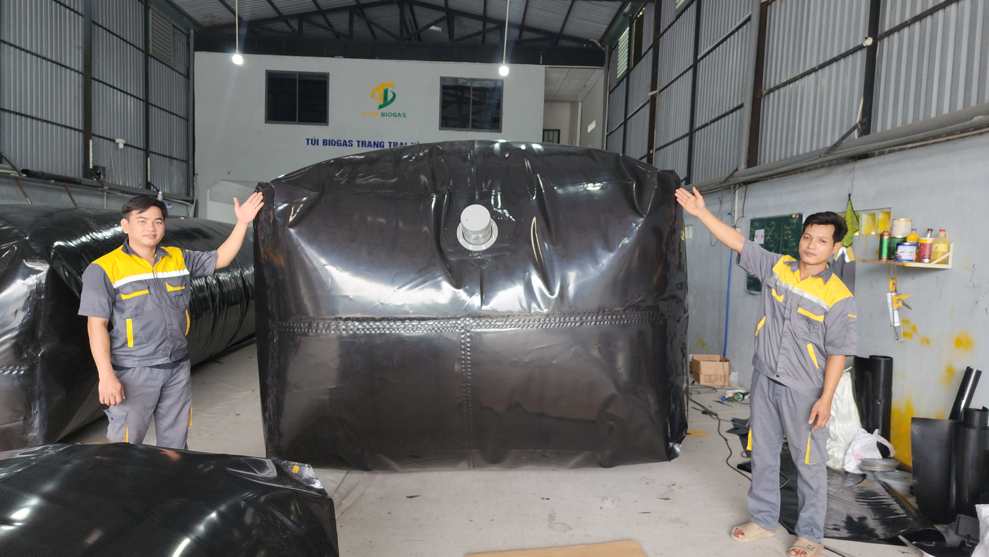Xưởng sản xuất túi biogas vuông thế hệ mới của Công Ty Tuấn Biogas tự hào giới thiệu sản phẩm cải tiến dành cho trang trại và nông hộ: túi biogas VUÔNG thế hệ mới với thiết kế hình học sắc nét và van điều áp tự xả, giúp khí năng ổn định, lắp đặt dễ dàng và an toàn tối ưu.