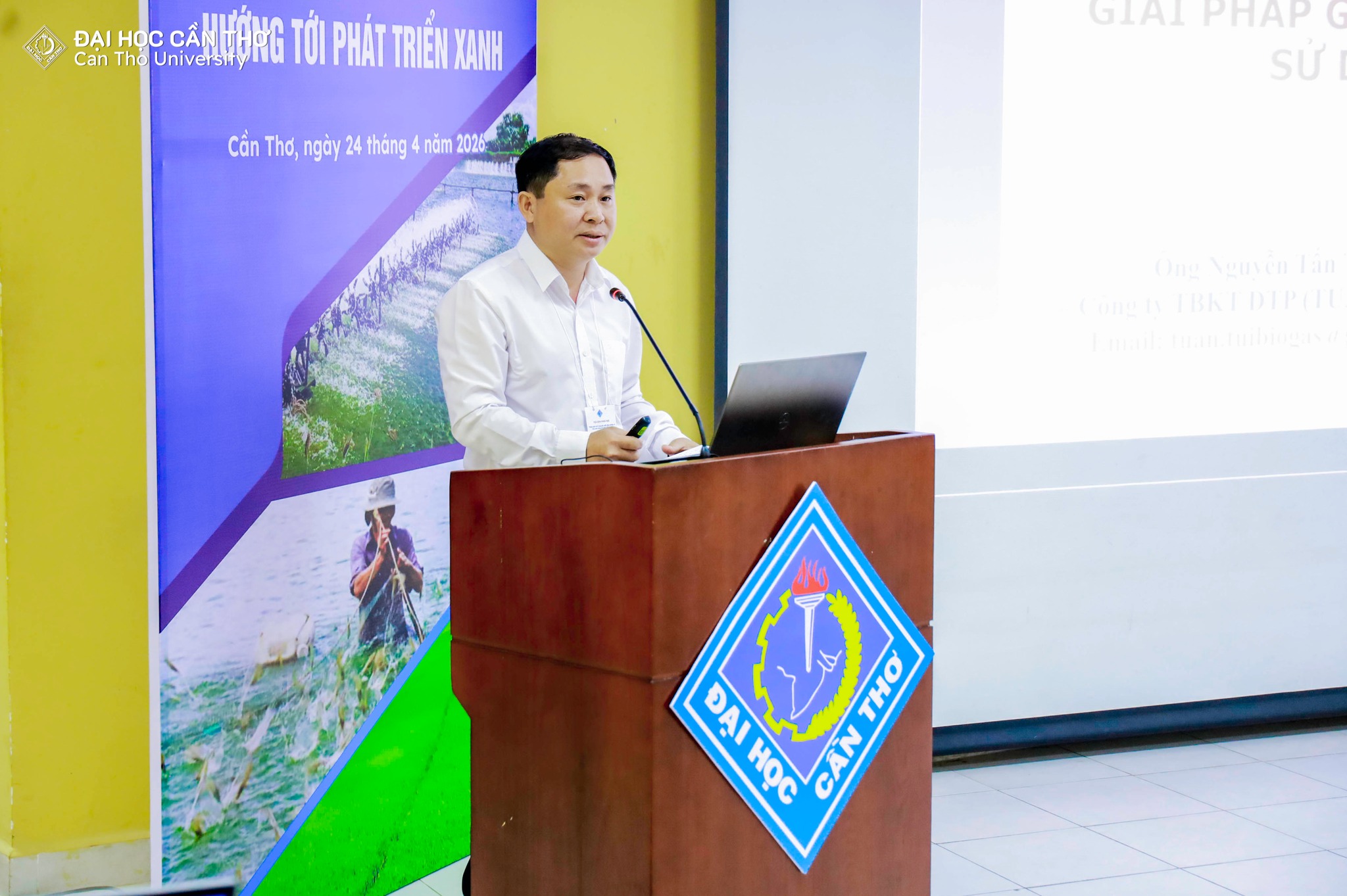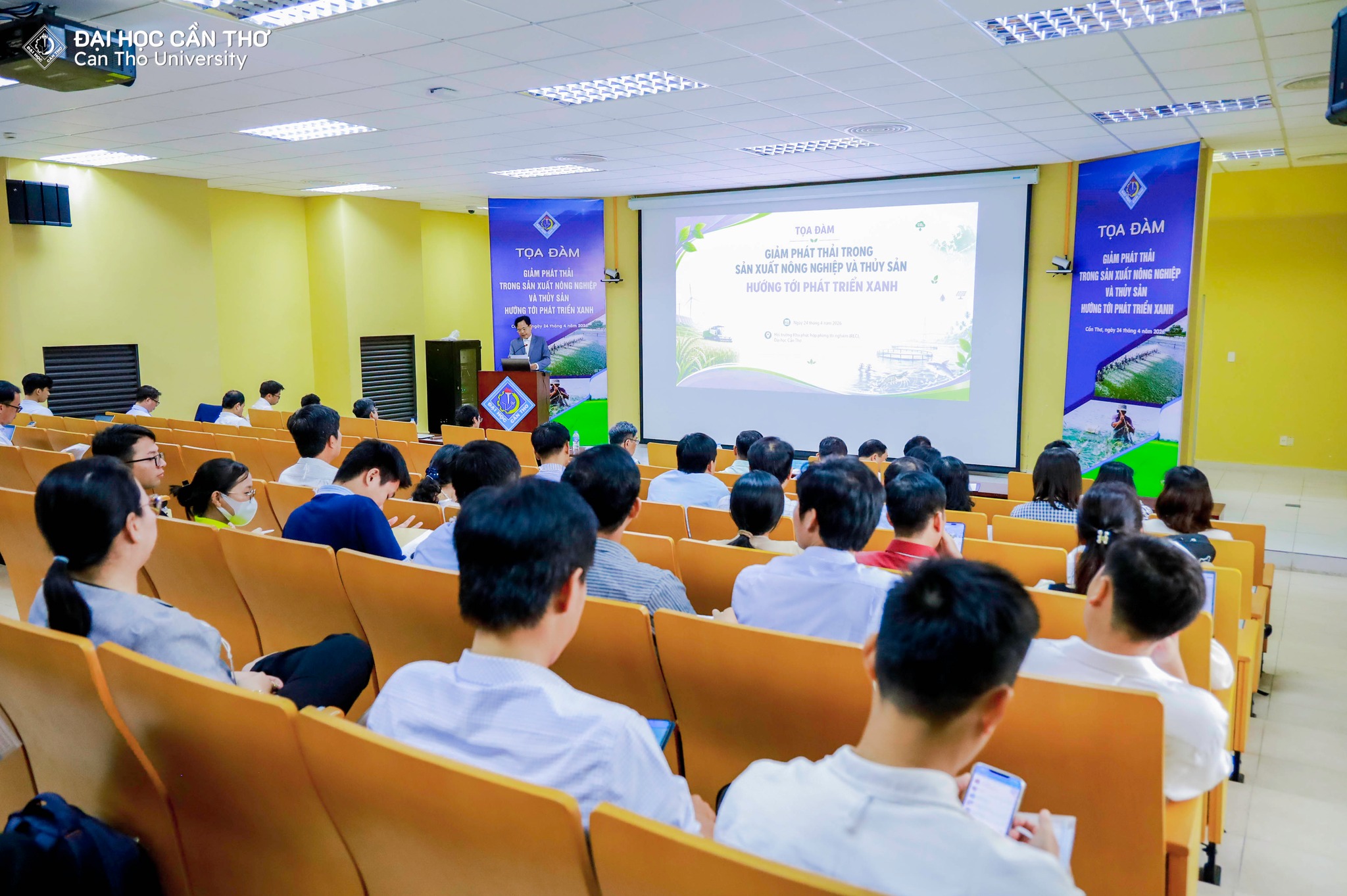 Sáng ngày 24/4/2026, Khoa Môi trường và Tài nguyên thiên nhiên - Đại học Cần Thơ tổ chức Tọa đàm “Giảm phát thải trong sản xuất nông nghiệp và thủy sản hướng tới phát triển xanh” nhằm tạo diễn đàn trao đổi học thuật, kết nối doanh nghiệp và các bên liên quan trong việc thúc đẩy các giải pháp giảm phát thải, sử dụng hiệu quả tài nguyên và phát triển mô hình sản xuất bền vững tại vùng Đồng bằng sông Cửu Long.