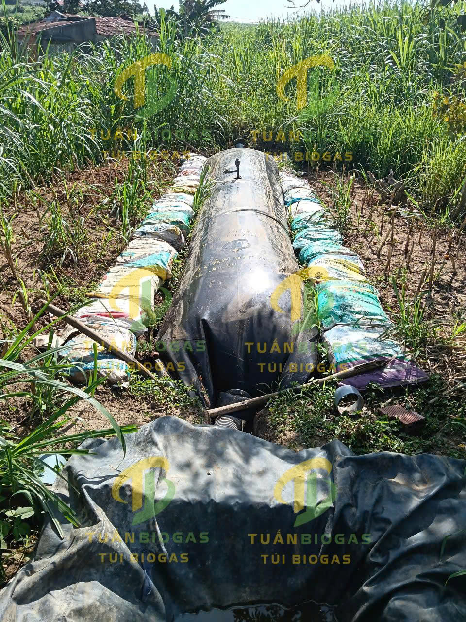 Khi túi được giao đến, bà con hãy trải túi dọc theo chiều dài của hố.