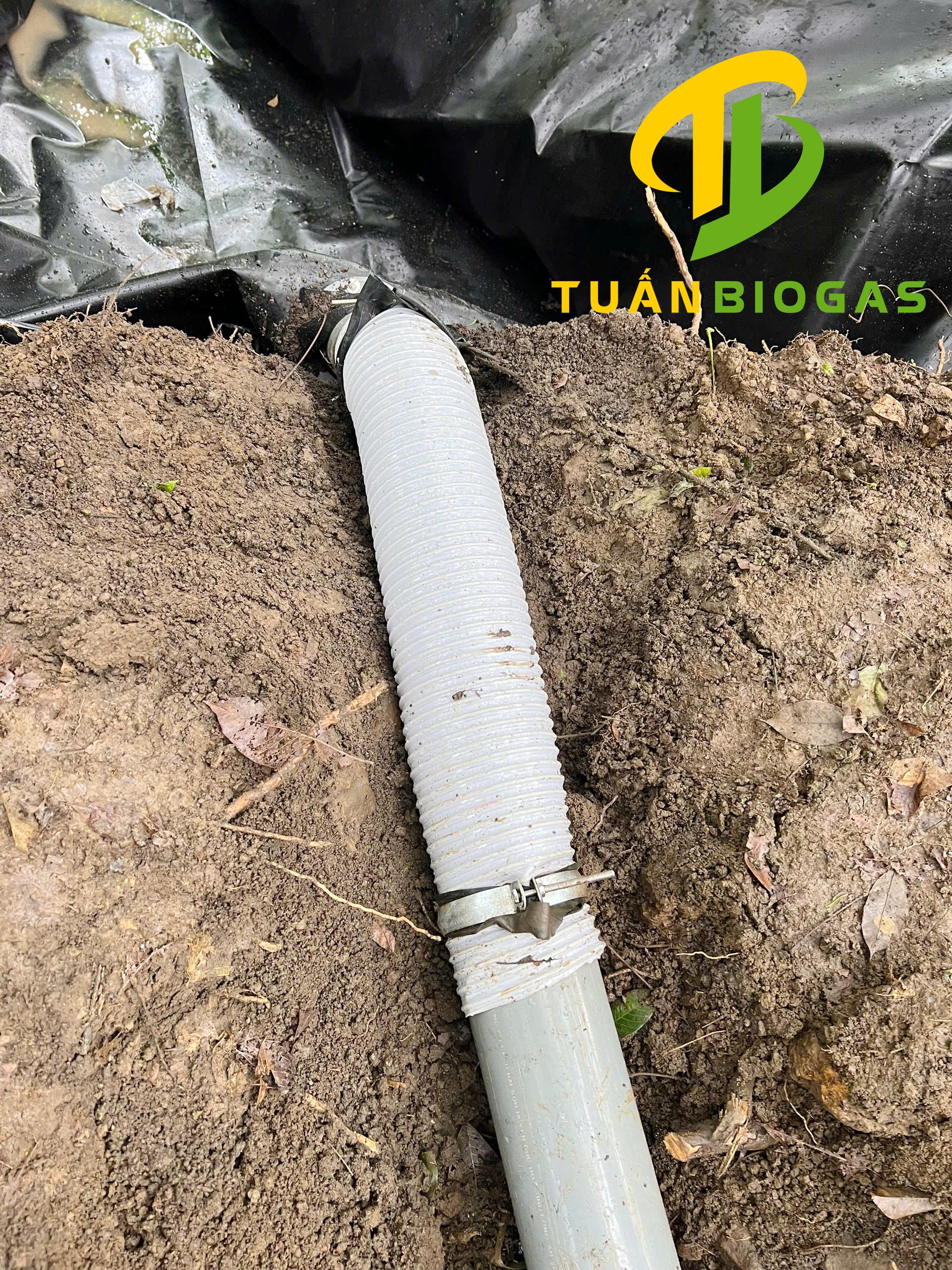 Đây là bí quyết cực kỳ quan trọng giúp túi biogas 6 khối bền bỉ theo năm tháng. Nếu bạn nối trực tiếp ống cứng của hố vào hệ thống chuồng trại, khi túi sinh gas phồng to sẽ đẩy gãy nứt đường ống.