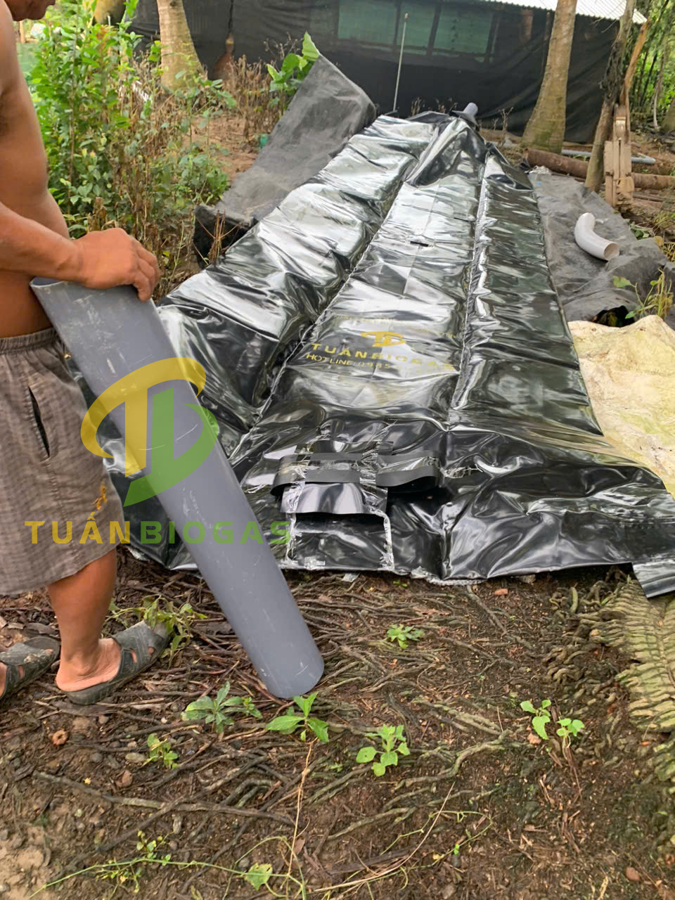 Trước khi tiến hành lắp đặt, bạn cần đào hố theo đúng kích thước tiêu chuẩn mà Tuấn Biogas cung cấp cho dòng túi biogas 6 khối.