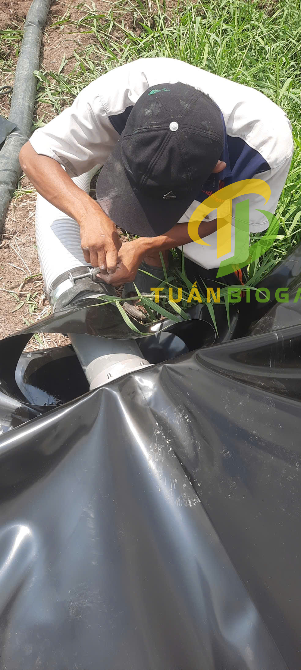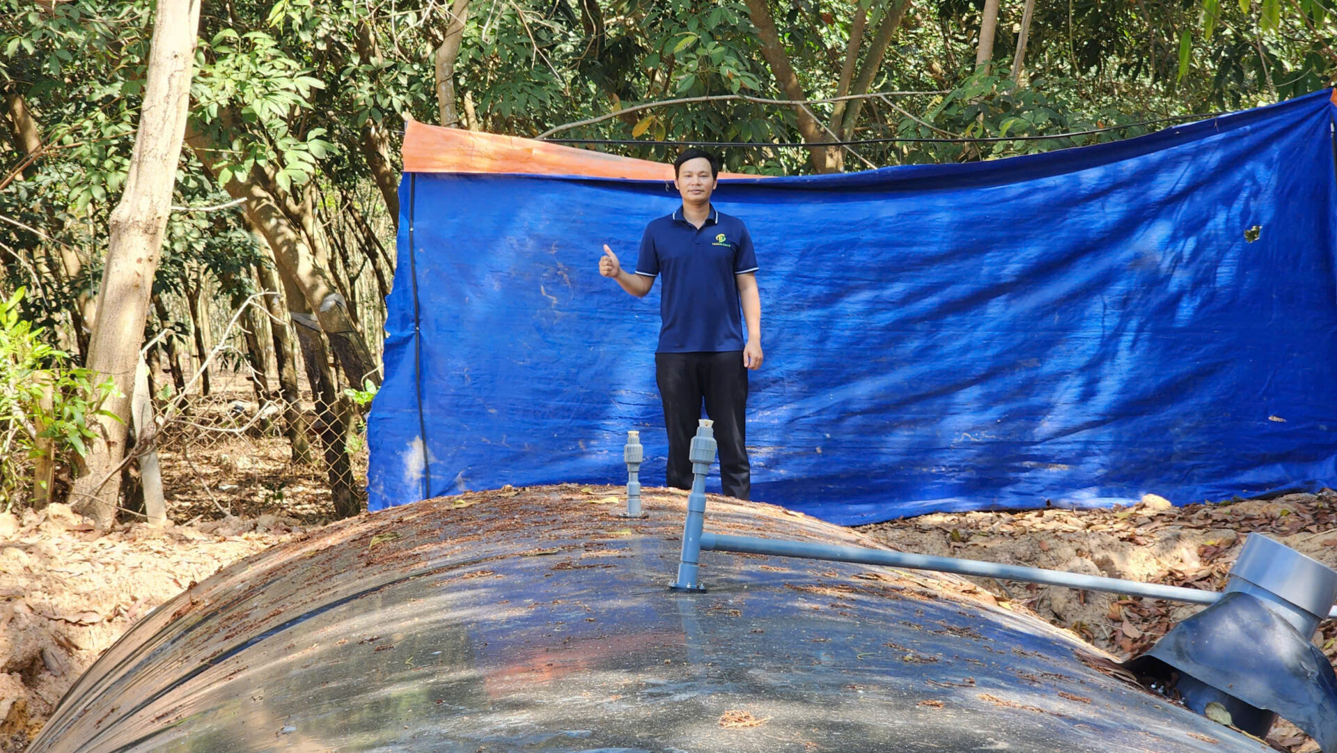 Tiếp theo, lắp hệ thống van và đặc biệt là van điều áp tự xả một chiều (Tuấn Biogas tặng kèm trong bộ phụ kiện). Chiếc van này có vai trò sống còn: tự động xả bớt khí nếu áp suất gas trong hầm quá cao, giúp túi không bao giờ bị nổ hay quá tải.