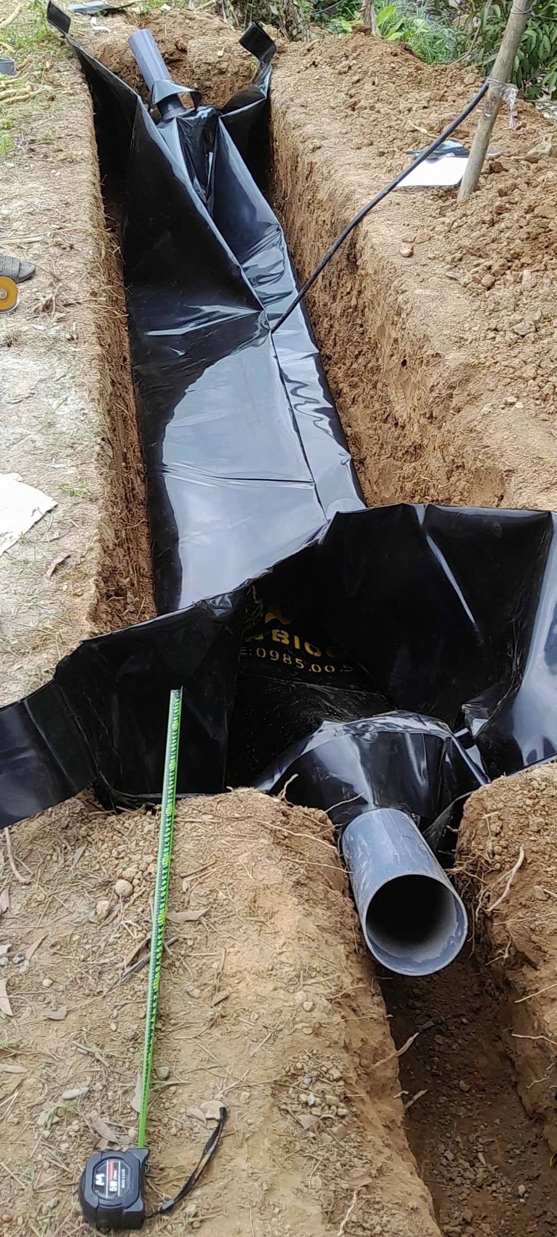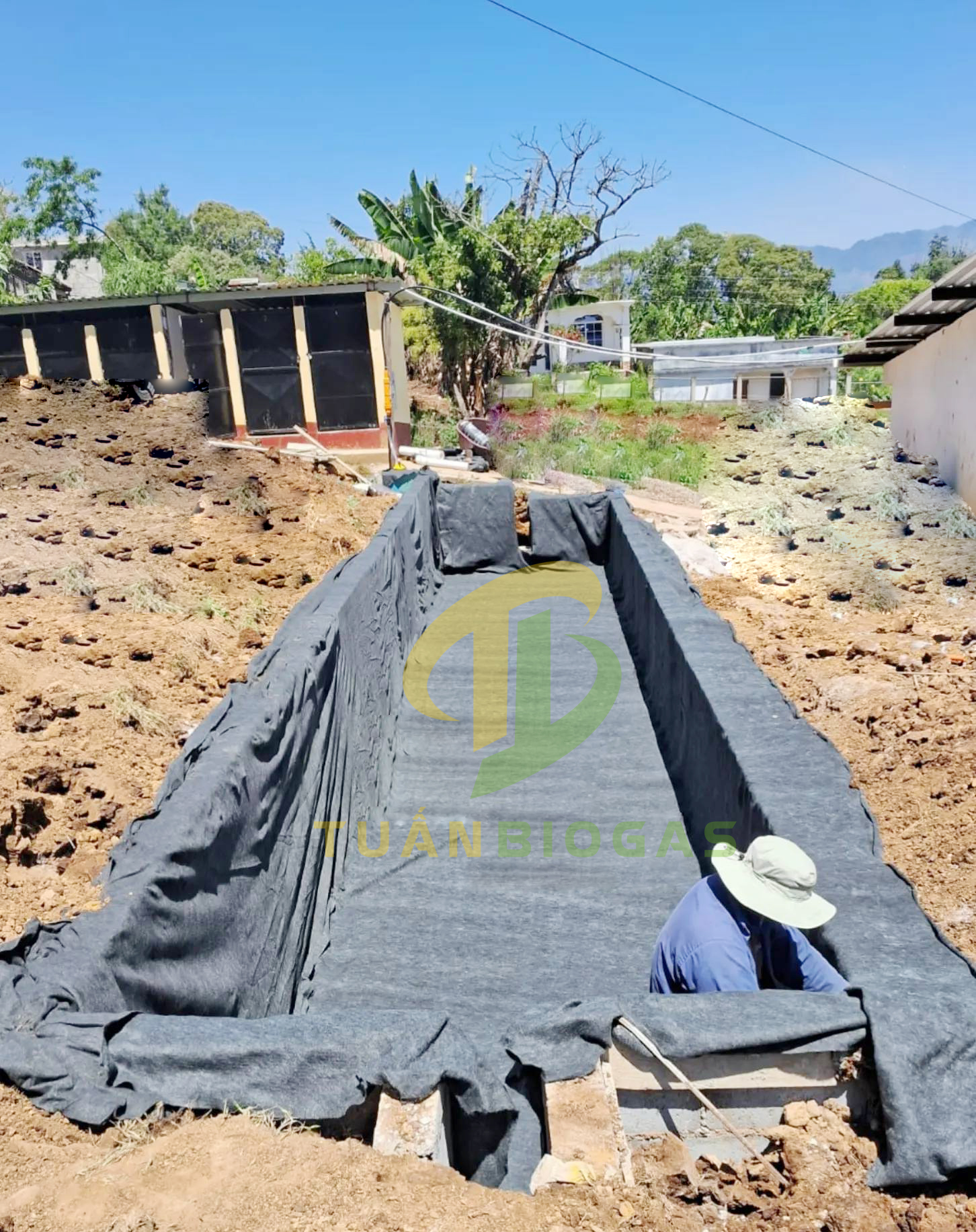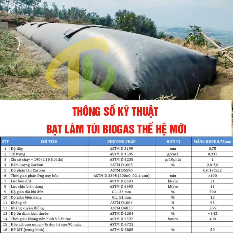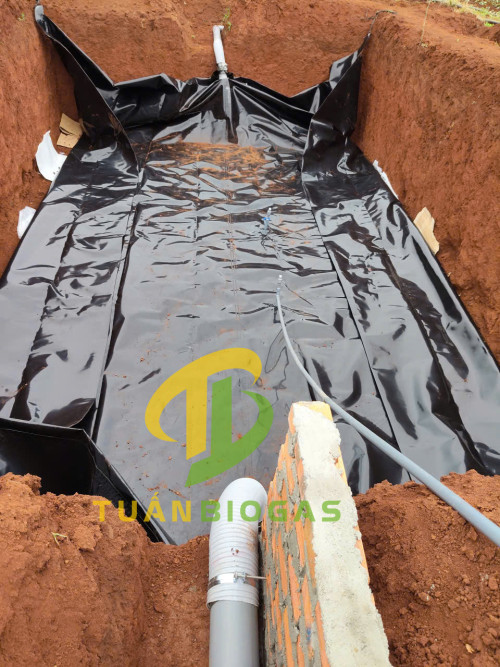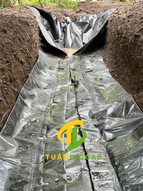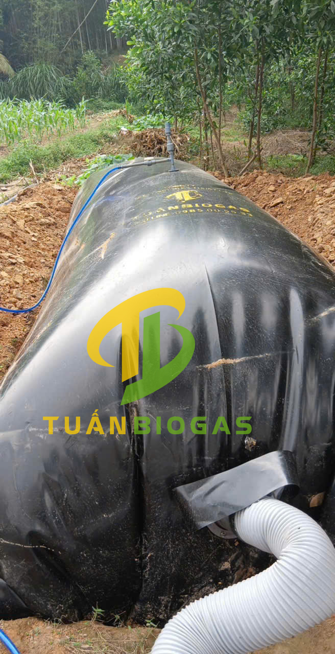 Túi biogas Tuấn Biogas được chế tạo từ bạt HDPE độ dày tiêu chuẩn 0.75 mm, hàn nhiệt kín, chống rò rỉ và chịu được thời tiết khắc nghiệt.