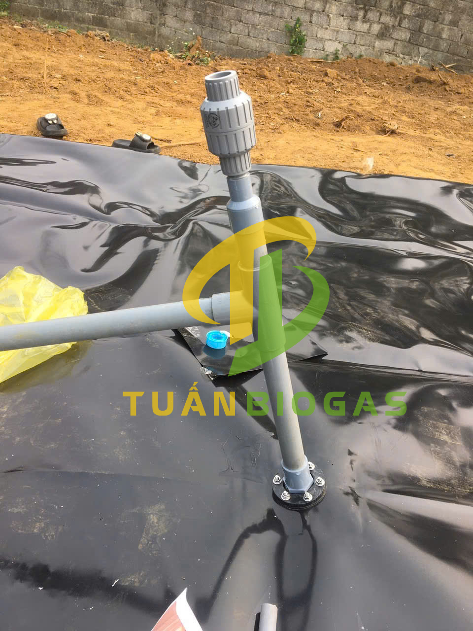 3. Lắp ống đầu vào – đầu ra theo chuẩn kỹ thuật Tuấn Biogas