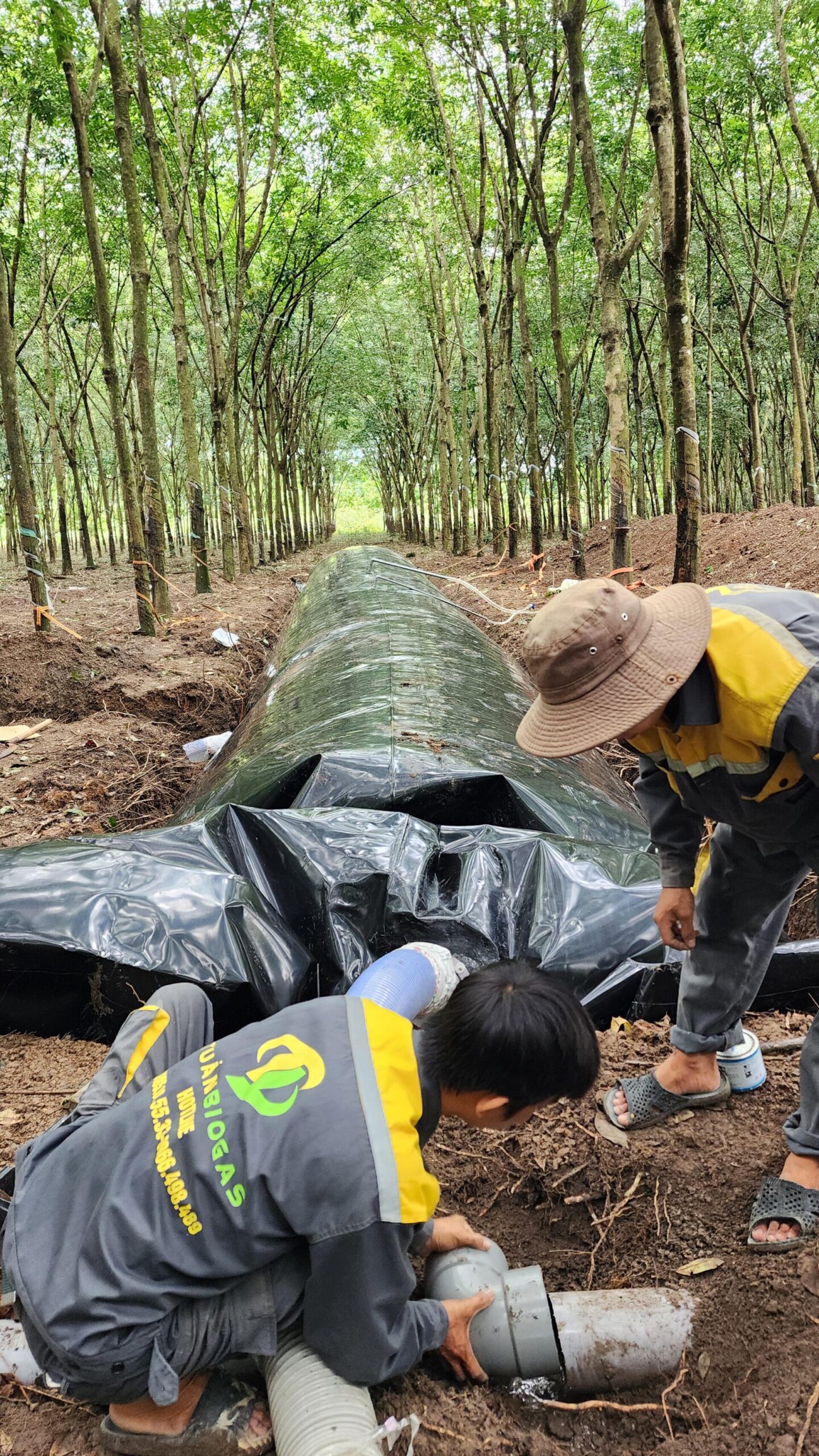 Theo chia sẻ từ đội thi công Tuấn Biogas, việc lắp đặt một túi biogas lớn cho trang trại tại Tây Ninh chỉ mất khoảng 1 ngày rưỡi. Quá trình thi công bao gồm đào hố, đặt túi, lắp hệ thống thu khí và van tự xả.