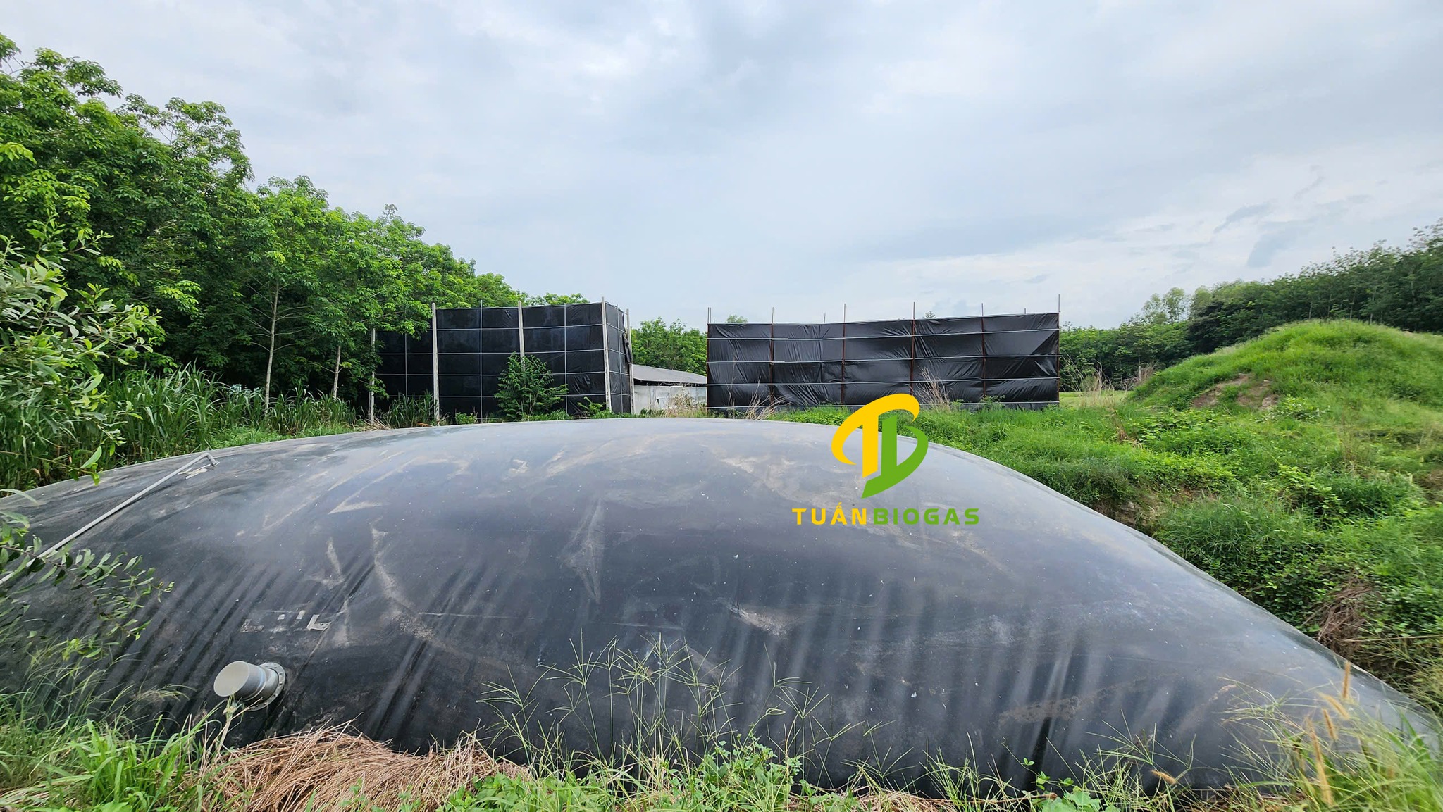 Hệ thống gồm: hai túi nhỏ tiền xử lý (hố lắng) + một túi chính dung tích 700 m³, đặt chìm (mặt đất lên khoảng 2.5 m) để chứa và thu khí sinh học.