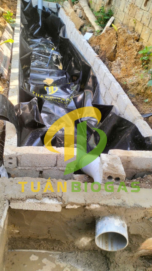 - Ống nạp phân: nối từ bể chứa phân đến miệng túi (PVC phi 140)