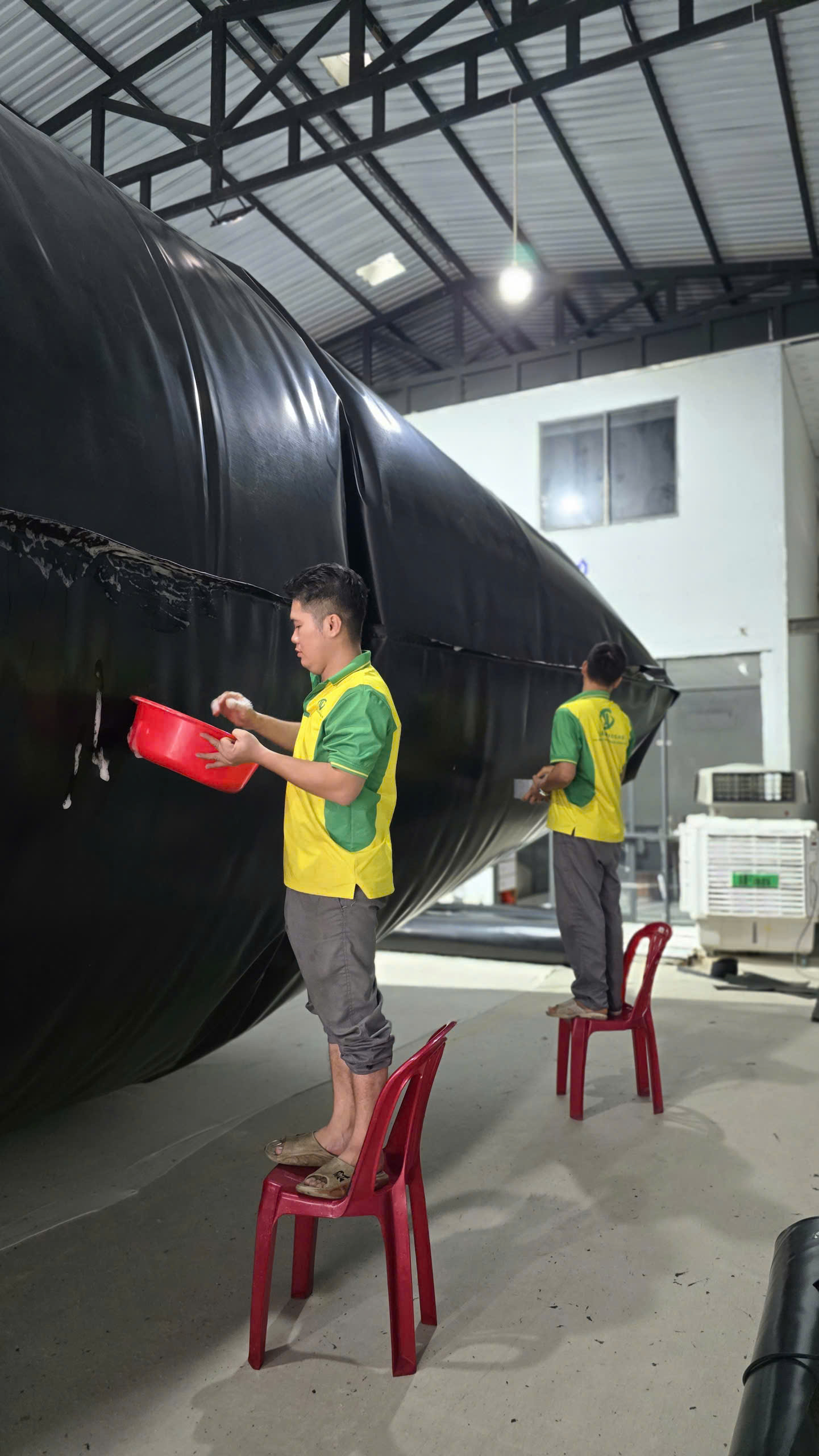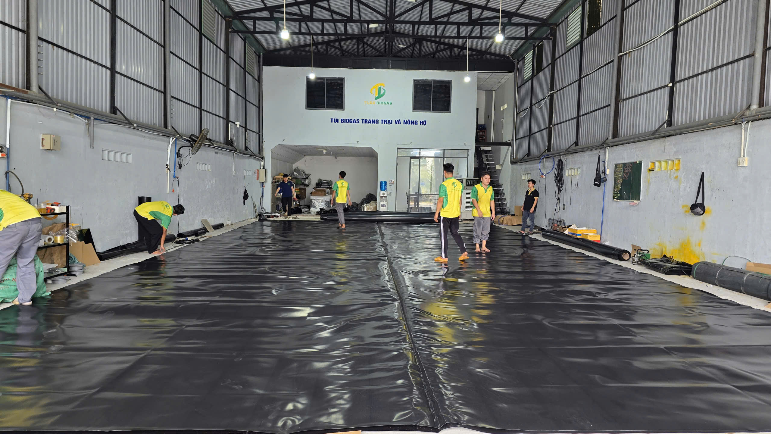 Tại xưởng Tuấn Biogas, mỗi chiếc túi trữ khí đều được sản xuất bằng máy móc hiện đại và tay nghề đội kỹ thuật cao: Đảm bảo độ bền – kín khí – an toàn tuyệt đối cho bà con. Quy trình gồm 5 bước chính: